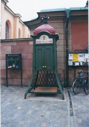 瑞典的电话亭历史悠久,现在仍然可以看到很多传统的电话亭。这种电话亭也是封闭式的,从电话亭的外面,完全看不到打电话者的形象。但是,电话亭的下半部分是开放的,可以让人知道电话机是否在使用中。小小电话亭外型结构复杂,端庄宏伟,俨然像是一座浓缩的古典建筑,为打电话这一行为增添了一种庄重感。