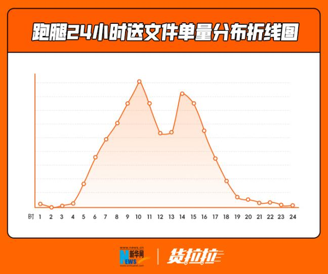 在社交和职场上,市民参与的货运场景变得越来越多。《报告》显示,从凌晨5时起,“职场人”开始陆续找跑腿送文件,上午10时和下午2时,是跑腿送文件的高峰期。跑腿师傅有时也会跨越千里送件,今年9月,一个跑腿订单从上海闵行区发出,次日到达河南省南阳市淅川县,里程达到1037KM。