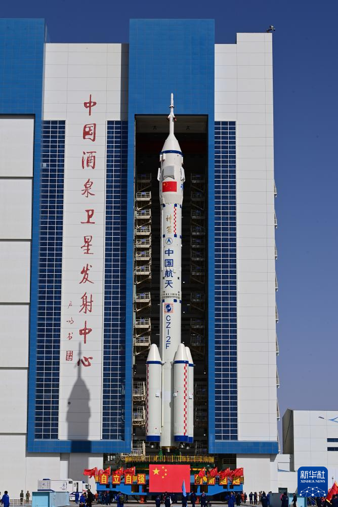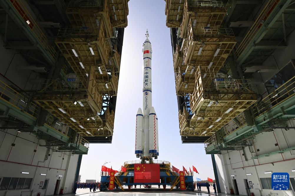 4月17日,神舟十八号载人飞船与长征二号F遥十八运载火箭组合体开始转运。新华社发(汪江波 摄)