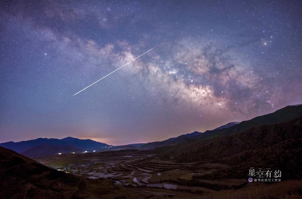 星空摄影师戴建峰2022年5月5日在四川九寨沟拍摄的宝瓶座η流星雨。(星联CSVA供图)