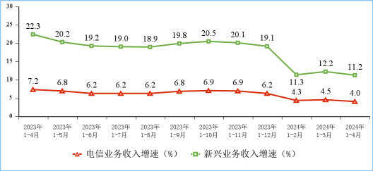 在5G之外,三家基础电信企业都在积极发展数据中心、大数据、云计算、物联网等新兴业务。数据显示,1-4月份,新兴业务收入共达1508亿元,同比增长11.2%,占电信业务收入的25.5%,拉动电信业务收入增长2.7个百分点。