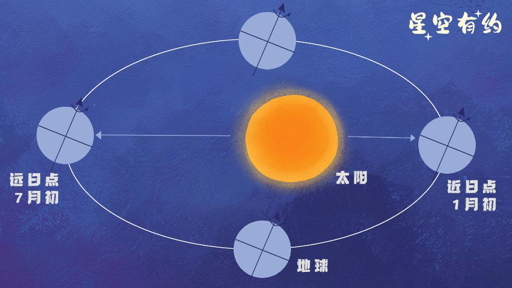 每年,地球过远日点发生在7月初,过近日点发生在1月初。今年,地球过远日点的时间为7月5日13时,太阳视直径为31角分27角秒,比今年1月3日地球过近日点时所见的日面视直径小了约3.4%。