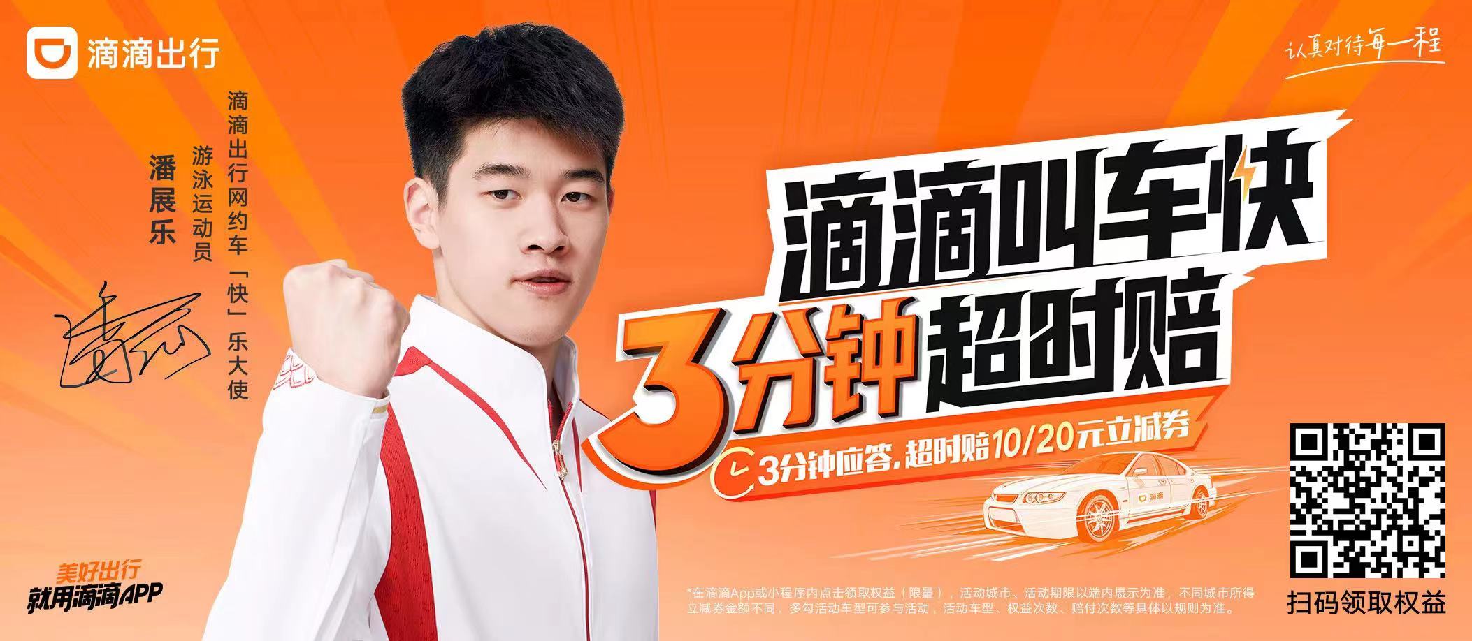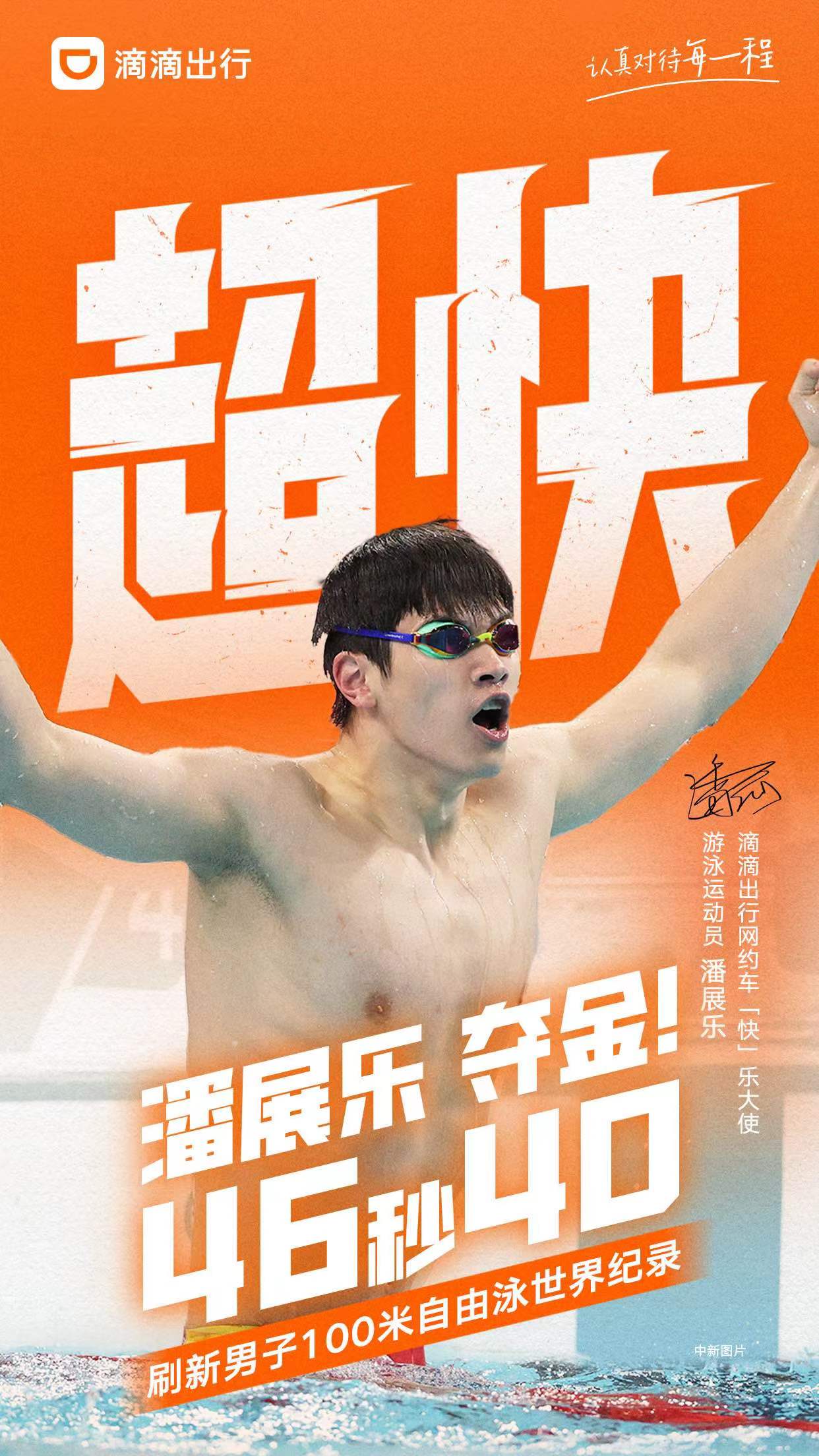 潘展乐在赛场上努力拼搏,认真对待每一次比赛的心态,和滴滴认真对待每一次出行不谋而合,在出行这条道路上,滴滴将与潘展乐一起挑战更快。