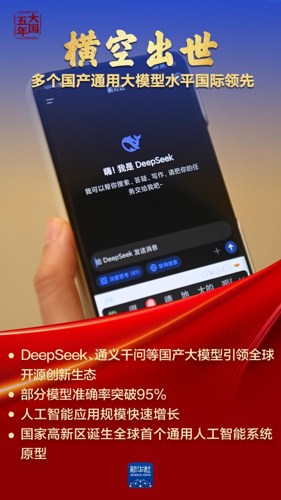 Deepseek横空出世,中文大模型繁星竞辉百花齐放;专利数量占全球六成,关键核心技术不再“缺芯少魂”;生成式人工智能用户超过5亿,AI飞入寻常百姓家……“十四五”期间,我国人工智能驶入快车道,实现了从“跟跑”“并跑”到多个领域“领跑”的历史性跨越。