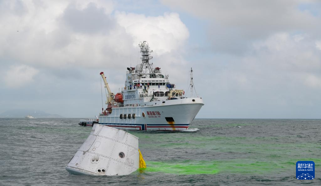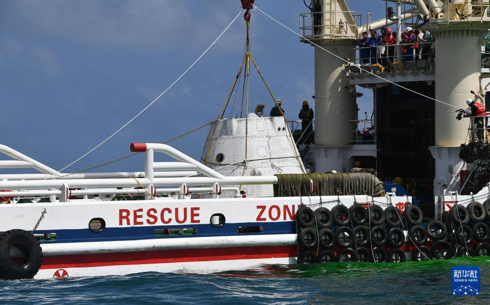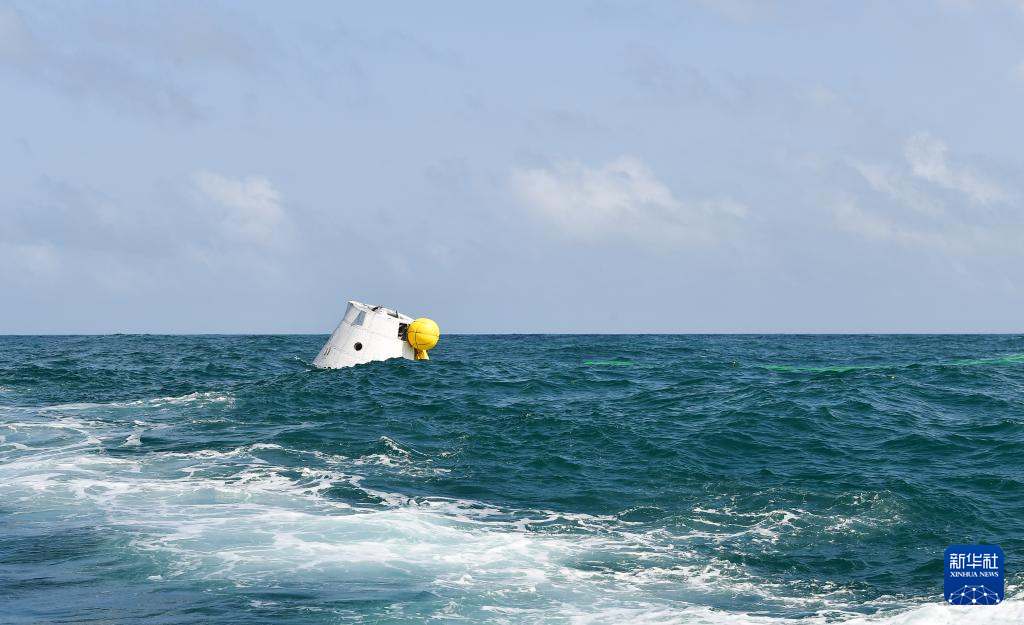 2月11日,梦舟载人飞船返回舱按程序受控安全溅落于预定海域。新华社发(王衡 摄)