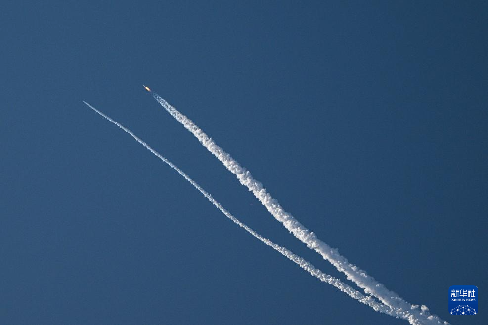 2月11日,梦舟飞船接收火箭发出的逃逸指令,成功实施分离逃逸。新华社发(王衡 摄)