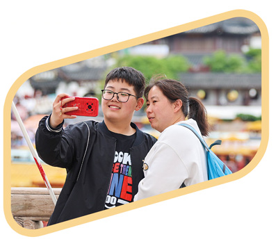 “五一”假期第一天,南京夫子庙景区迎来38.8万人次的客流,比去年同期增长32.88%。来自江苏镇江的林菲一家,到南京旅游的第一站就是夫子庙步行街。他们先到南京中国科举博物馆参观“中国科举饮食文化”展,又顺着人群来到非遗市集,在制作绒花中领略传统文化,最后给女儿换上汉服,和巡游舞蹈《繁花似锦》的演员们沉浸式互动……品一味小吃,乘一次画舫,看秦淮河碧波光影,林菲一家一边体验秦淮文化,一边享受美好生活。