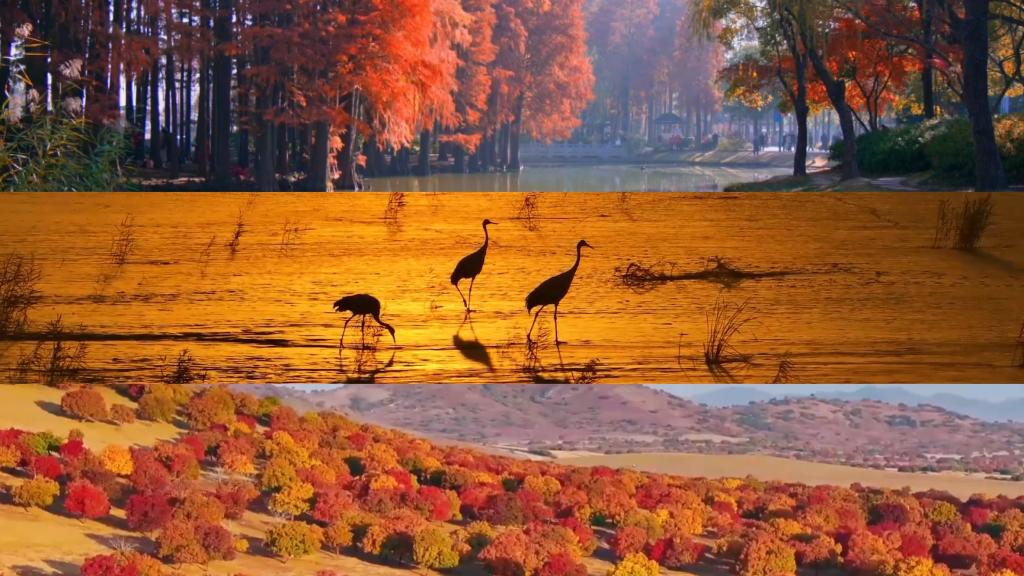 江苏鼋头渚秋意渐浓,与太湖相映成趣;山东黄河入海口,成群鸟儿在湿地觅食、嬉戏;山西太行山色彩缤纷,秋色宜人。