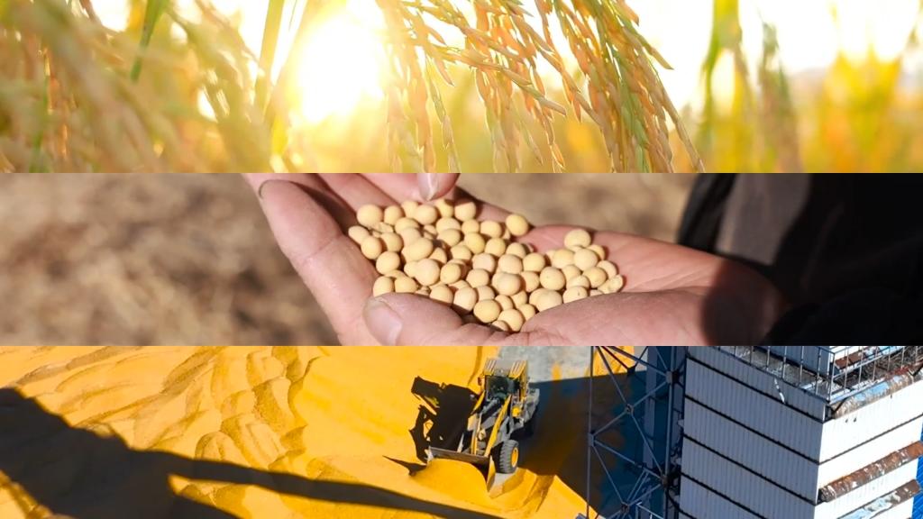广东乳源宽阔稻田迎丰收;黑龙江黑河田野上大豆摇铃、机器轰鸣,秋粮收购全面开秤。