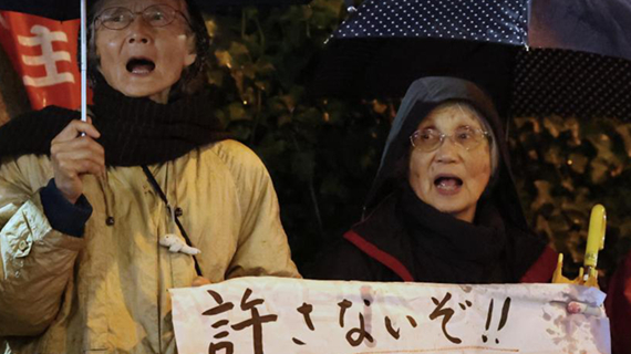 日本民众雨中抗议政府强行部署远程导弹