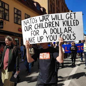 2023年4月22日,人们在瑞典斯德哥尔摩参加反北约、反军演抗议活动。新华社发(帕特里克·埃克斯特兰德 摄)