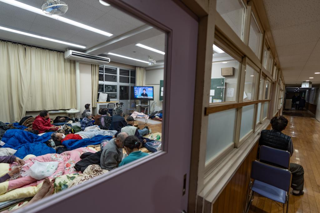 ↑1月3日,人们在日本石川县轮岛市一处容纳超700人的临时避难所内休息。 新华社记者 张笑宇 摄