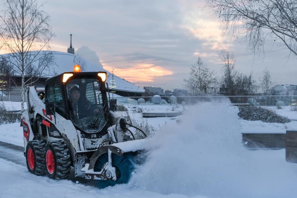 1月6日,在俄罗斯首都莫斯科,工作人员驾驶除雪车清理路面积雪。(新华社记者曹阳摄)