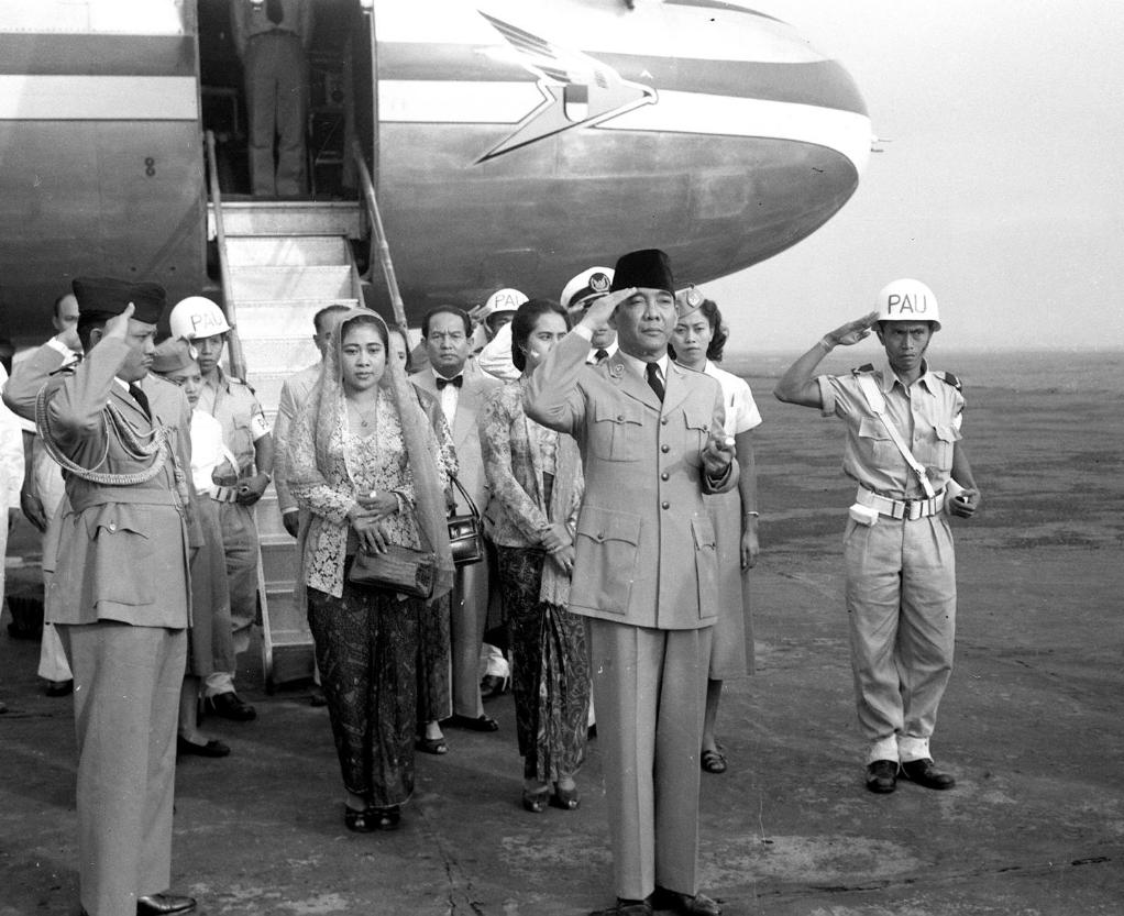 1955年4月18日至24日,第一次亚非会议在印尼万隆召开。这是时任印尼总统苏加诺抵达万隆,准备参加万隆会议开幕式。新华社发