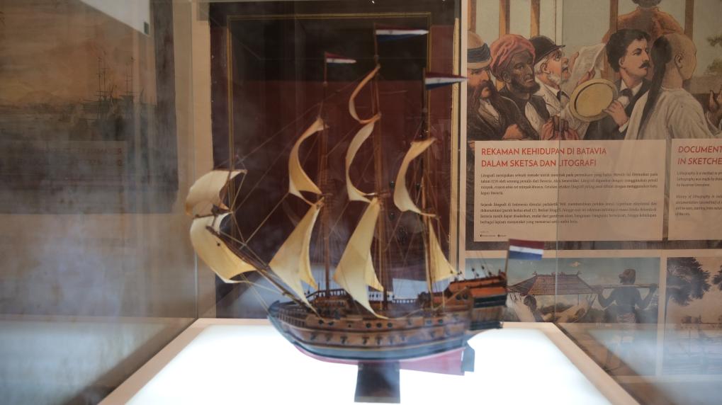 这是2024年4月14日拍摄的雅加达历史博物馆里陈列的殖民时期荷兰东印度公司的船只模型。新华社记者叶平凡摄