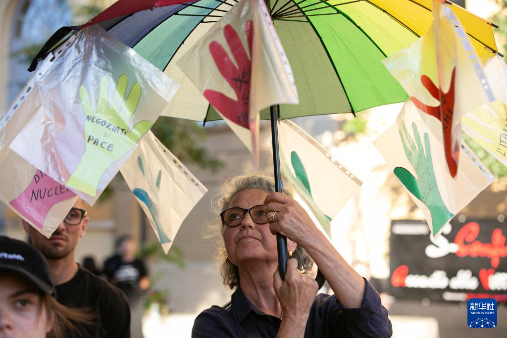 人们在广场拉起用意大利语、英语等多语种书写的横幅——“不要G7”“停止种族灭绝”“G7正在破坏地球”……一些人举起巴勒斯坦国旗,抗议峰会对加沙冲突不作为。