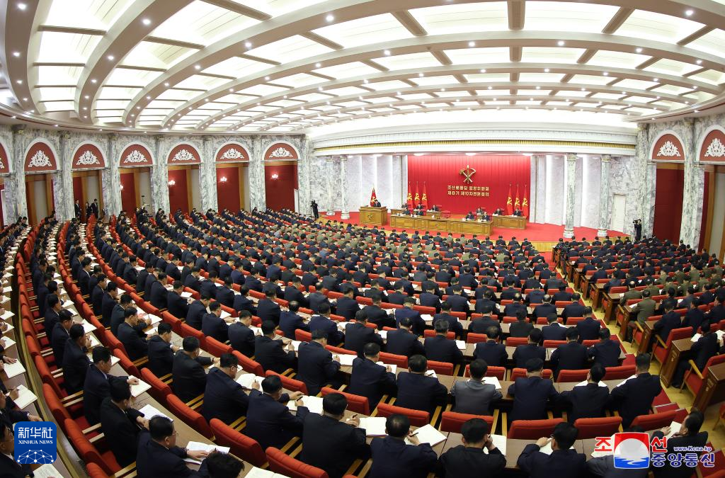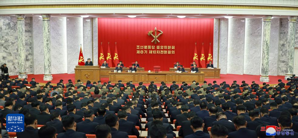 这张朝中社发布的照片显示的是朝鲜劳动党第八届中央委员会第十次扩大全会会场。新华社/朝中社