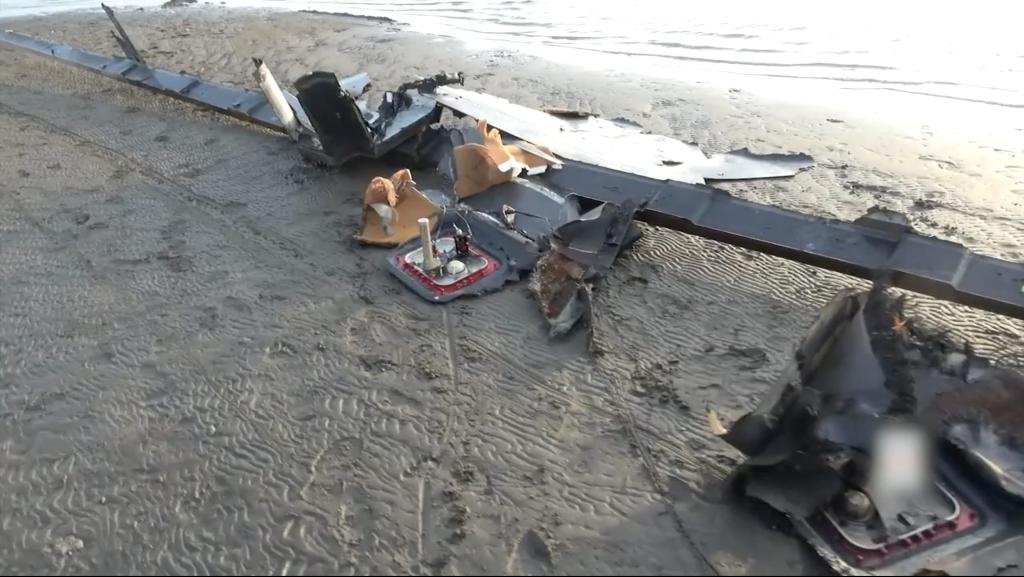 这张2月20日的视频截图显示的是,疑似被胡塞武装击落的美国MQ-9无人机残骸坠落到也门红海城市荷台达的一处海滩上。新华社发