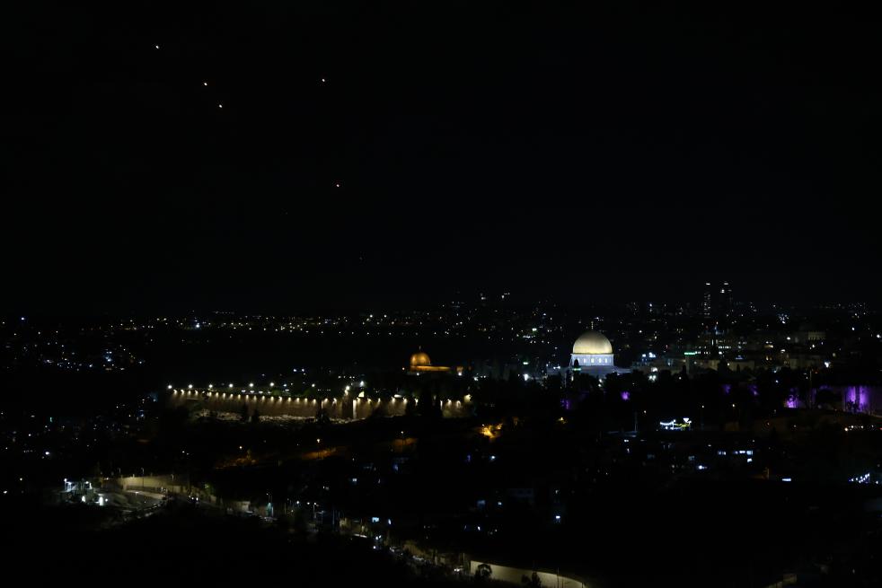 10月1日,伊朗发射的导弹从耶路撒冷上空飞过。新华社发(贾马尔·阿瓦德摄)