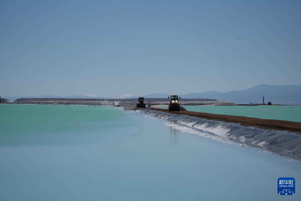 4月24日,工人操作机械在阿根廷胡胡伊省考查里-奥拉罗斯锂矿项目现场作业。新华社记者 张铎 摄