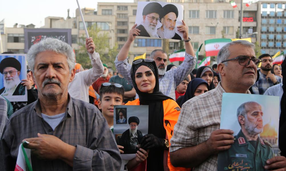 6月24日,民众在伊朗首都德黑兰革命广场庆祝伊以停火。新华社发