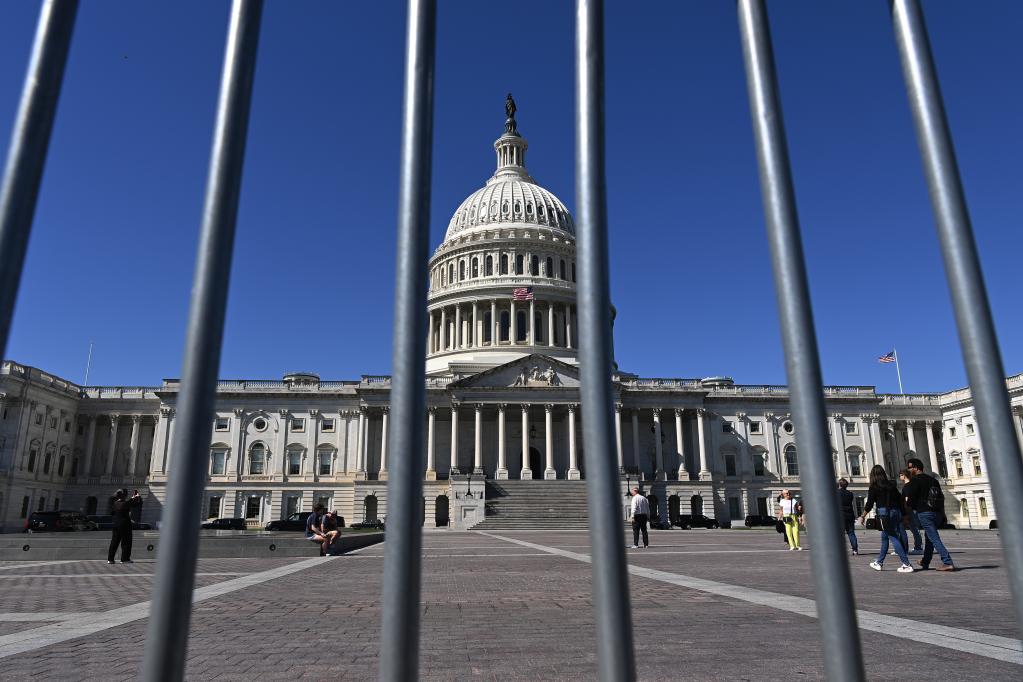 这是10月1日在美国首都华盛顿拍摄的美国国会大厦。新华社记者 李睿 摄