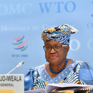 3月19日,在瑞士日内瓦世界贸易组织总部,世贸组织总干事伊维拉在新闻发布会上讲话。新华社记者 连漪 摄