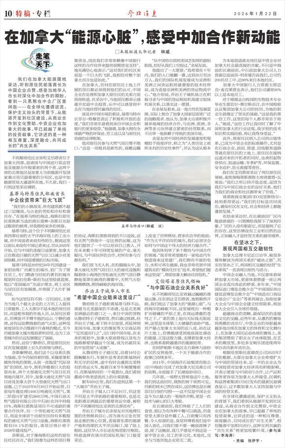 在全球化遭遇逆流、保护主义抬头的背景下,我们看到从能源开发到社区建设,从商业合作到文化赞助,中资企业在加拿大的故事,早已超越了单纯的投资叙事,它讲述的是一种相互尊重、深度融合、共同成长的“共生关系”。相信随着中加相向而行,这种互利共赢的“共生关系”将更加枝繁叶茂。(参与采写:李海涛)