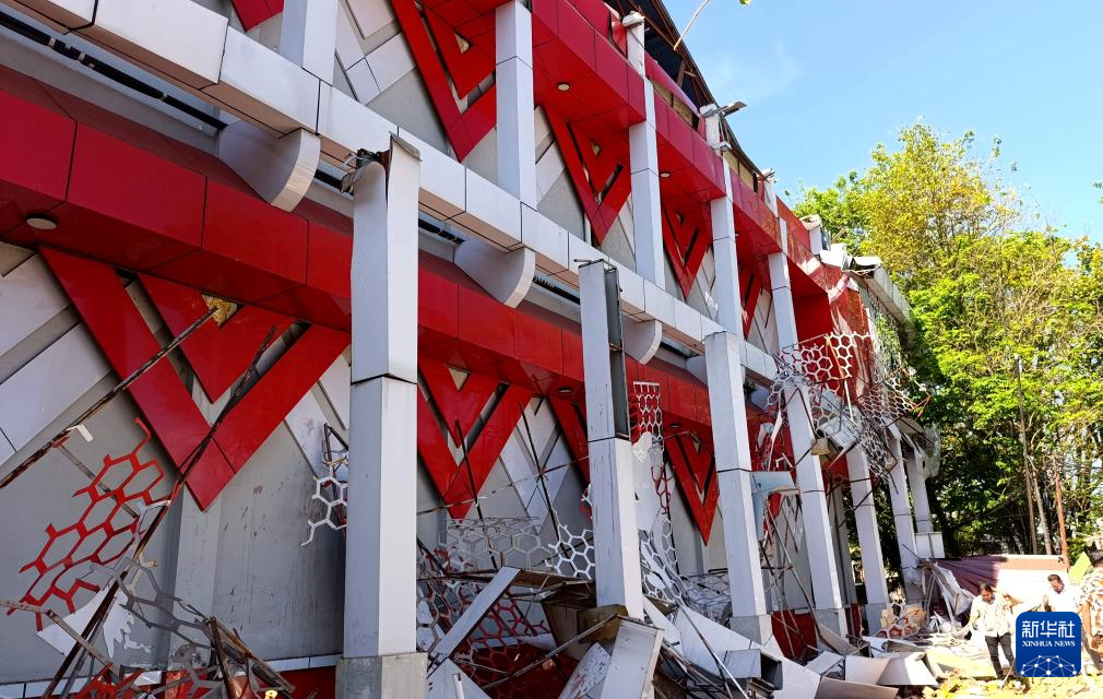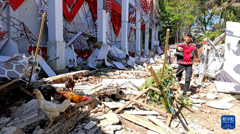 这是4月2日在印度尼西亚北苏拉威西省万鸦老拍摄的一座受损建筑。新华社发(弗兰斯·努格拉哈摄)