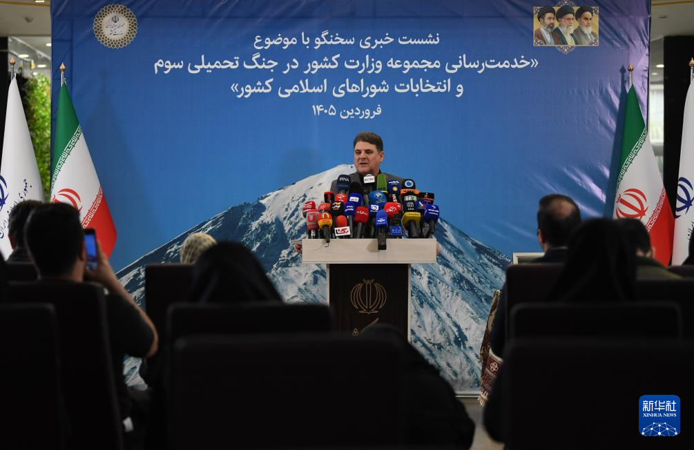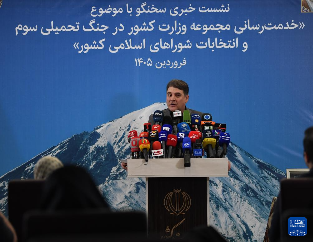 4月13日,伊朗内政部副部长阿里·泽尼万德在伊朗首都德黑兰出席新闻发布会。新华社记者 沙达提 摄