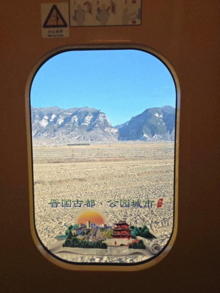 2月2日,D1657次,阳泉至太原的列车上随手拍。车窗的黄色玻璃框比较特别。太阳暖暖的,天格外蓝,恰好几朵白云飘过,城市街道与飞驰列车交汇成彩色的美好。@揆叙