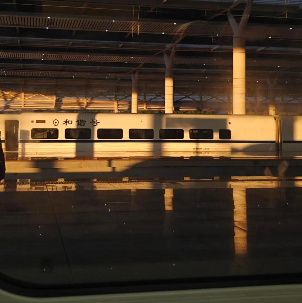 夕阳下的和谐号,好美。位置昆明南站。@是永是之