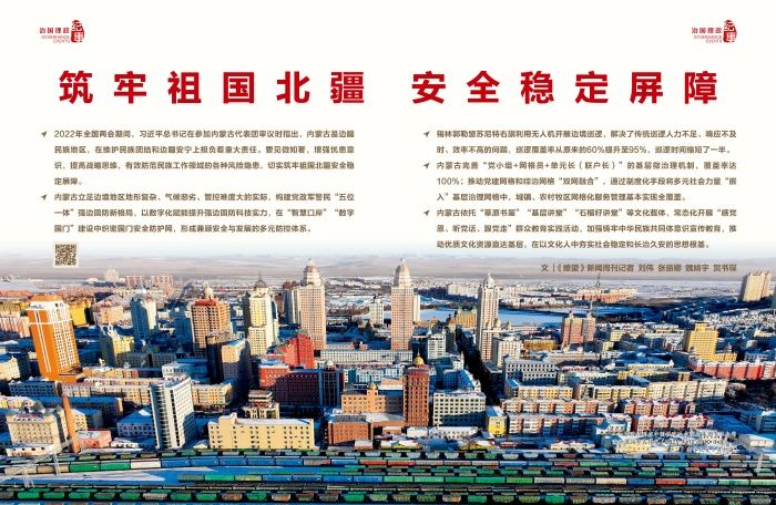 边陲之戍,用保封疆,国之大防,莫过于此。边疆稳固,边境才能稳定发展,边民才能安居乐业。内蒙古立足边境地区地形复杂、气候恶劣、管控难度大的实际,构建党政军警民“五位一体”强边固防新局面,以数字化赋能提升强边固防科技实力,在“智慧口岸”“数字国门”建设中织密国门安全防护网,形成兼顾安全与发展的多元防控体系。