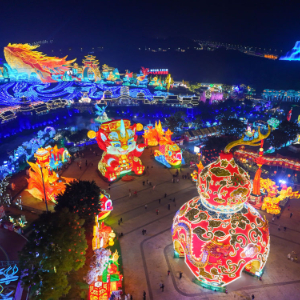 四川自贡,中华彩灯大世界内万灯齐燃,鎏金光影漫过整个园区,成为新春耀眼的民俗图景。