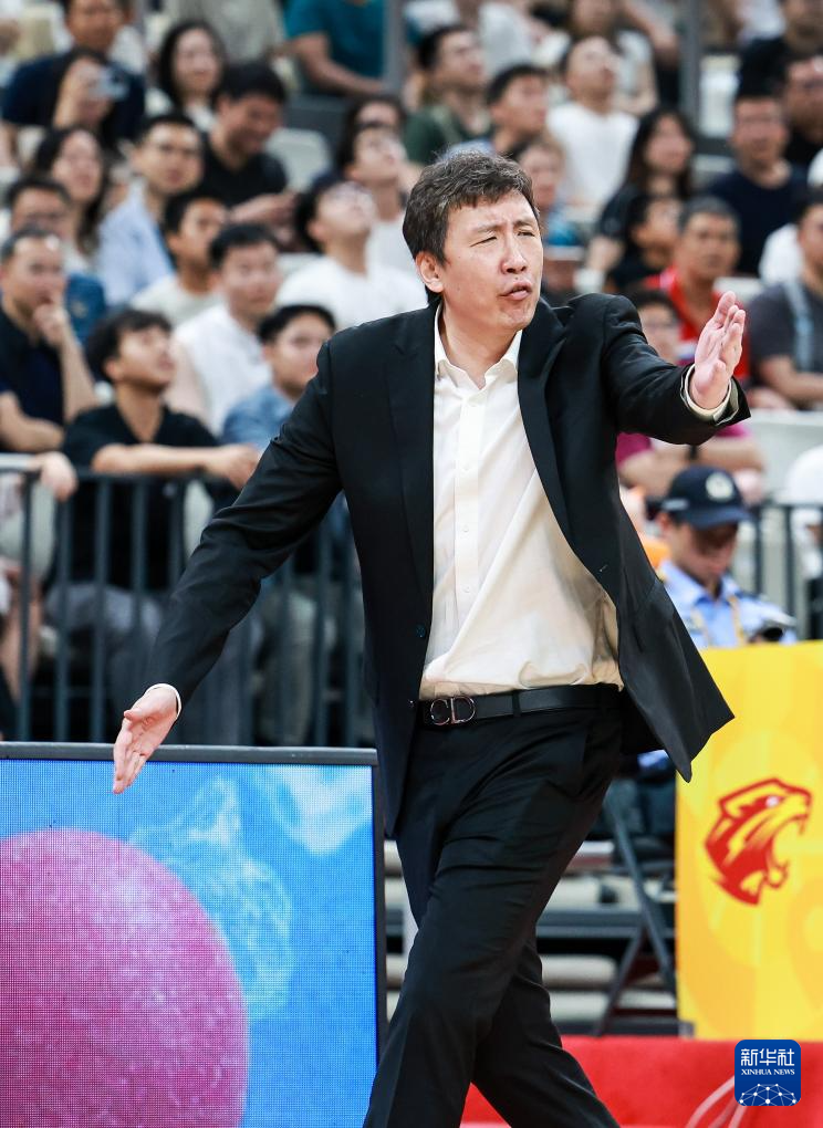 4月11日,深圳马可波罗队主教练郑永刚在场边指挥。