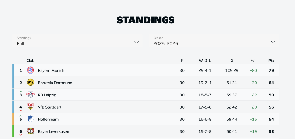 目前暂居联赛次席的多特蒙德已落后拜仁多达15分,在联赛还剩4轮的情况下彻底失去追赶希望,拜仁由此提前完成卫冕。与此同时,拜仁本赛季联赛进球数已达到109个,刷新德甲单赛季进球纪录。